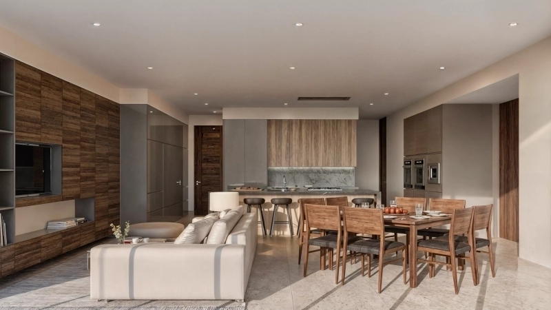 - Este departamento de 510 m² ha sido concebido como un refugio de tranquilidad y elegancia. Cada rincón interior refleja un equilibrio perfecto entre lujo y serenidad. Los espacios, cuidadosamente diseñados, presentan una combinación de materiales finos, iluminación suave y una paleta de colores que crea un ambiente relajante y refinado.