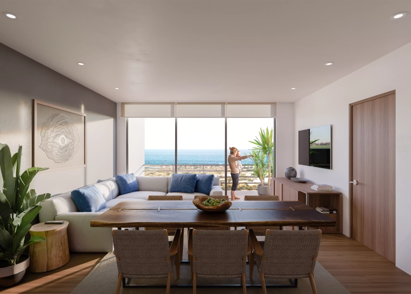 Cada uno de los 27 departamentos es una obra maestra de diseño y comodidad. Grandes ventanales y terrazas privadas proporcionan vistas infinitas al océano, mientras que el interior se distingue por acabados de alta calidad y tecnología de vanguardia. La luz natural fluye a través de los espacios, creando un ambiente donde la elegancia y la funcionalidad se fusionan de manera armoniosa.