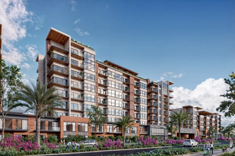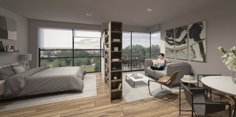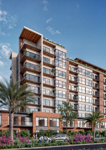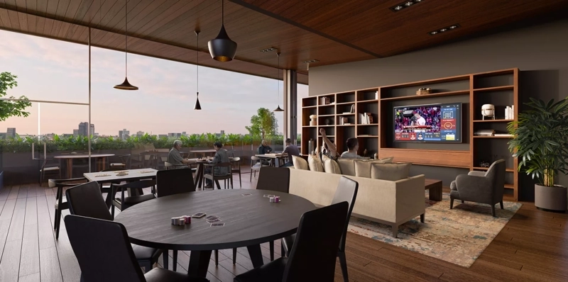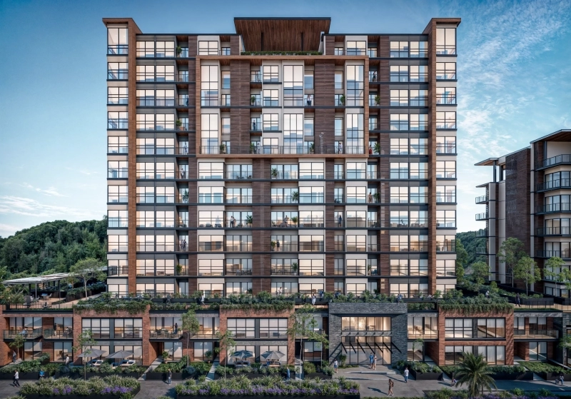 - Desde la planta baja, los restaurantes y comercios crean un ambiente animado que fluye hacia los 5 pisos de departamentos y sus amenidades, situadas estratégicamente en la parte superior de la torre. Estas amenidades, diseñadas con atención al bienestar y la recreación, ofrecen a los residentes un escape sereno dentro del bullicio urbano.